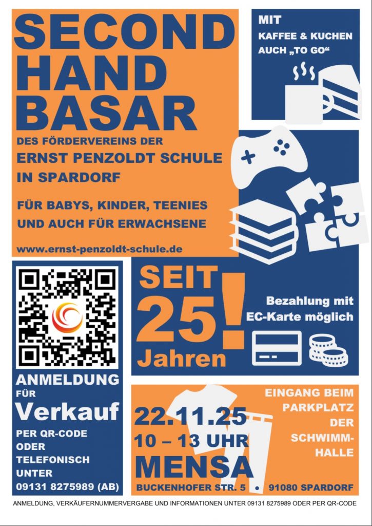 Der Second-Hand-Basar der Ernst-Penzoldt-Schule für Jung und Alt, für Groß und Klein, also: für Babys, Kinder, Teenies und auch für Erwachsene ist nun schon seit 25 Jahren Tradition an unserer Schule! Vielleicht haben sie Herbst- und Winterbekleidung (Baby-bis Erwachsenengrößen), Schuhe, Babyzubehör, Sportartikel (auch Fahrräder, Roller, Boards, etc.), Spielsachen, Bücher, Spiele, die Weiterlesen
